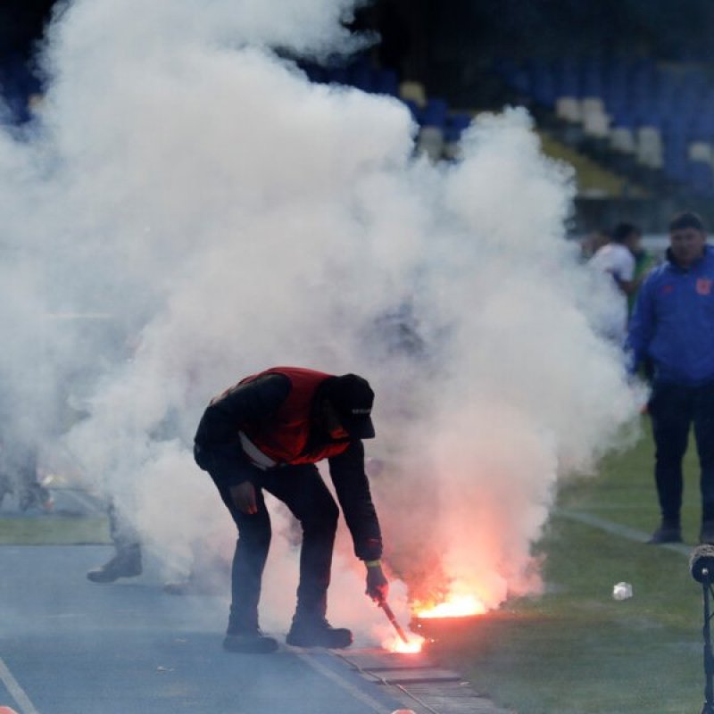 El duelo debió ser suspendido debido al lanzamiento de bengalas y bombas de ruido al interior de la cancha.