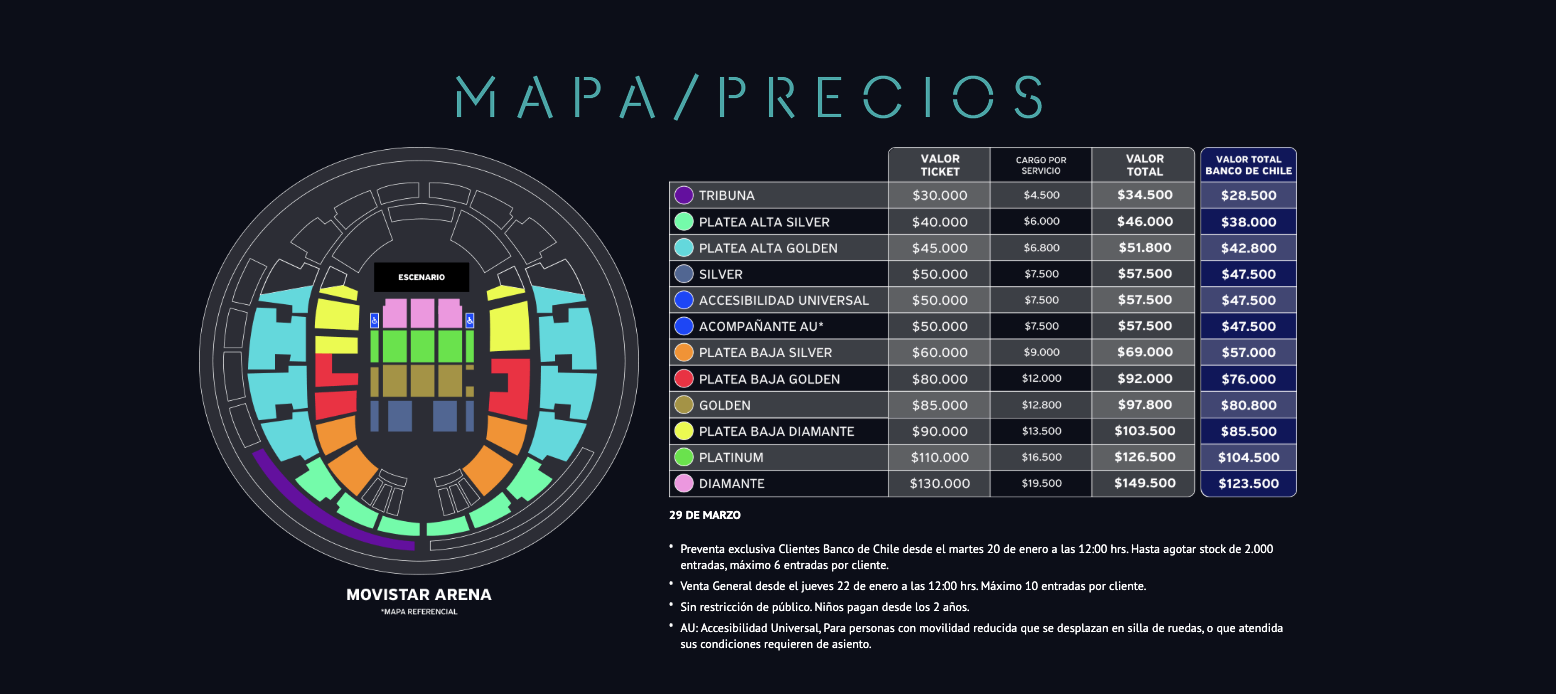 La nueva fecha fue programada para 29 de marzo. Los conciertos fijados para las noches del 26, 27 y 28 del mismo mes tienen las entradas agotadas.