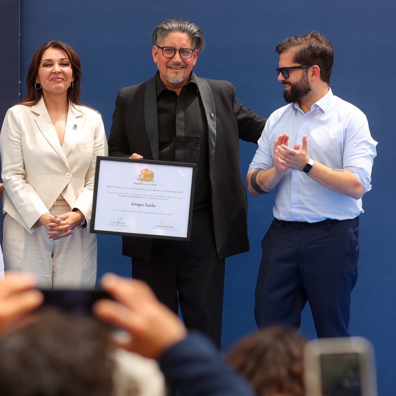 Presidente Boric entregó premio a la Música Popular al grupo Saiko en su...
