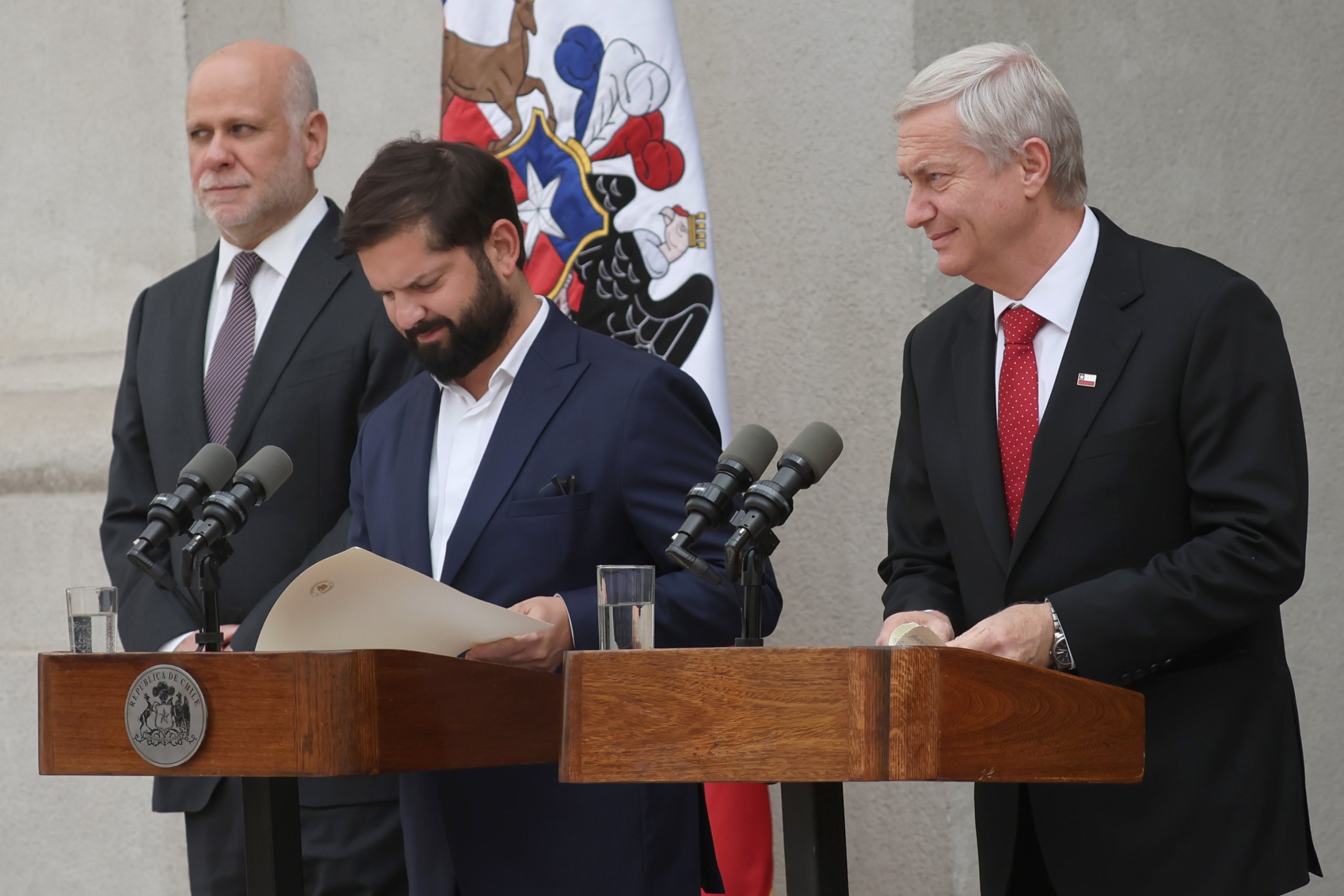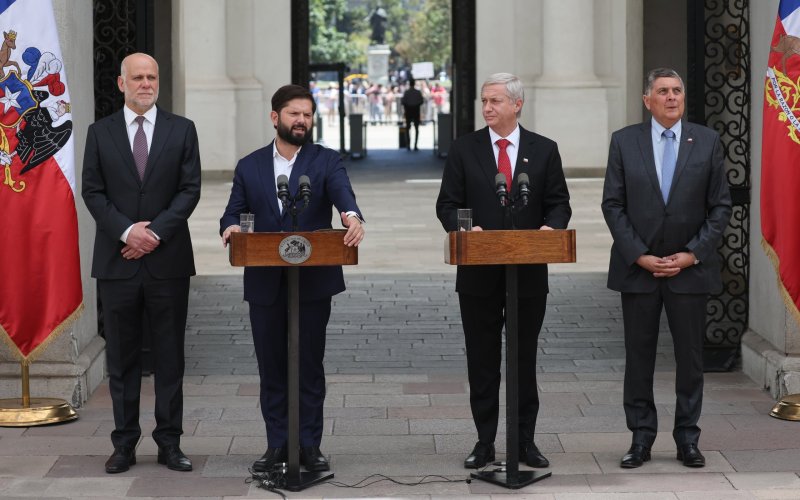 Tras el encuentro, ambos dieron una declaración conjunta en el Patio de Los Naranjos de la sede de Gobierno, junto a ambos colaboradores. "Esos días han sido difíciles para miles de compatriotas afectados por los incendios en la zona sur de nuestro país, particularmente en las regiones de Ñuble y Biobío", sostuvo el Mandatario.
