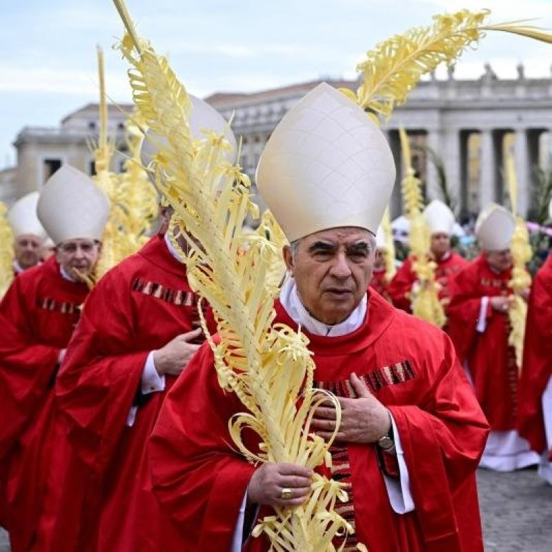 El cardenal italiano Angelo Becciu, condenado a 5 años y 6 meses de cárcel por un caso de irregularidades financieras, y al que el papa Francisco retiró sus privilegios como purpurado.