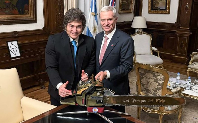 Tras el encuentro, el futuro Jefe de Estado chileno calificó la cita como "una reunión muy buena, muy buena". Pero, durante la cita, hubo un momento que llamó la atención y que no pasó desapercibido. Tras la reunión, el Presidente electo posó junto al mandatario argentino, Javier Milei, sosteniendo la icónica motosierra, que representa su política de recorte drástico del gasto público y reducción del tamaño del Estado en Argentina.