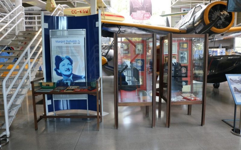 Entre los principales focos de la exhibición destaca la figura de Margot Duhalde, considerada una de las primeras mujeres piloto del país y protagonista de una destacada trayectoria internacional. Su historia, marcada por la determinación y la pasión por el vuelo, la llevó incluso a integrarse como piloto en la Air Transport Auxiliary durante la Segunda Guerra Mundial, convirtiéndose en un referente para la aviación femenina.