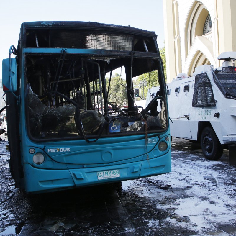 La máquina fue atacada por un grupo de encapuchados que salió desde el interior del recinto educacional. Carabineros tuvo que utilizar un carro lanza aguas para combatir las llamas.