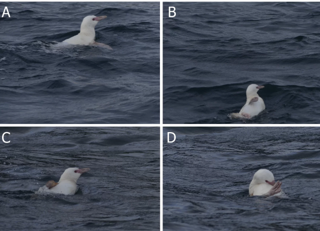 “Era un individuo juvenil, bastante chiquito, con coloración bien blanca en las plumas y las partes blandas más rosadas, y además andaba solo en el agua, lo que no es común en esta especie”, explicó la investigadora. Según detalló, se trataría del primer caso documentado en el país de un pingüino de Humboldt con este nivel de despigmentación.